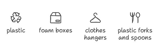 การใช้งาน: กล่องโฟม ไม้แขวนเสื้อ ช้อนส้อมพลาสติก